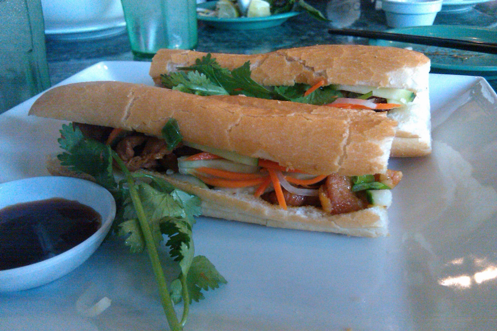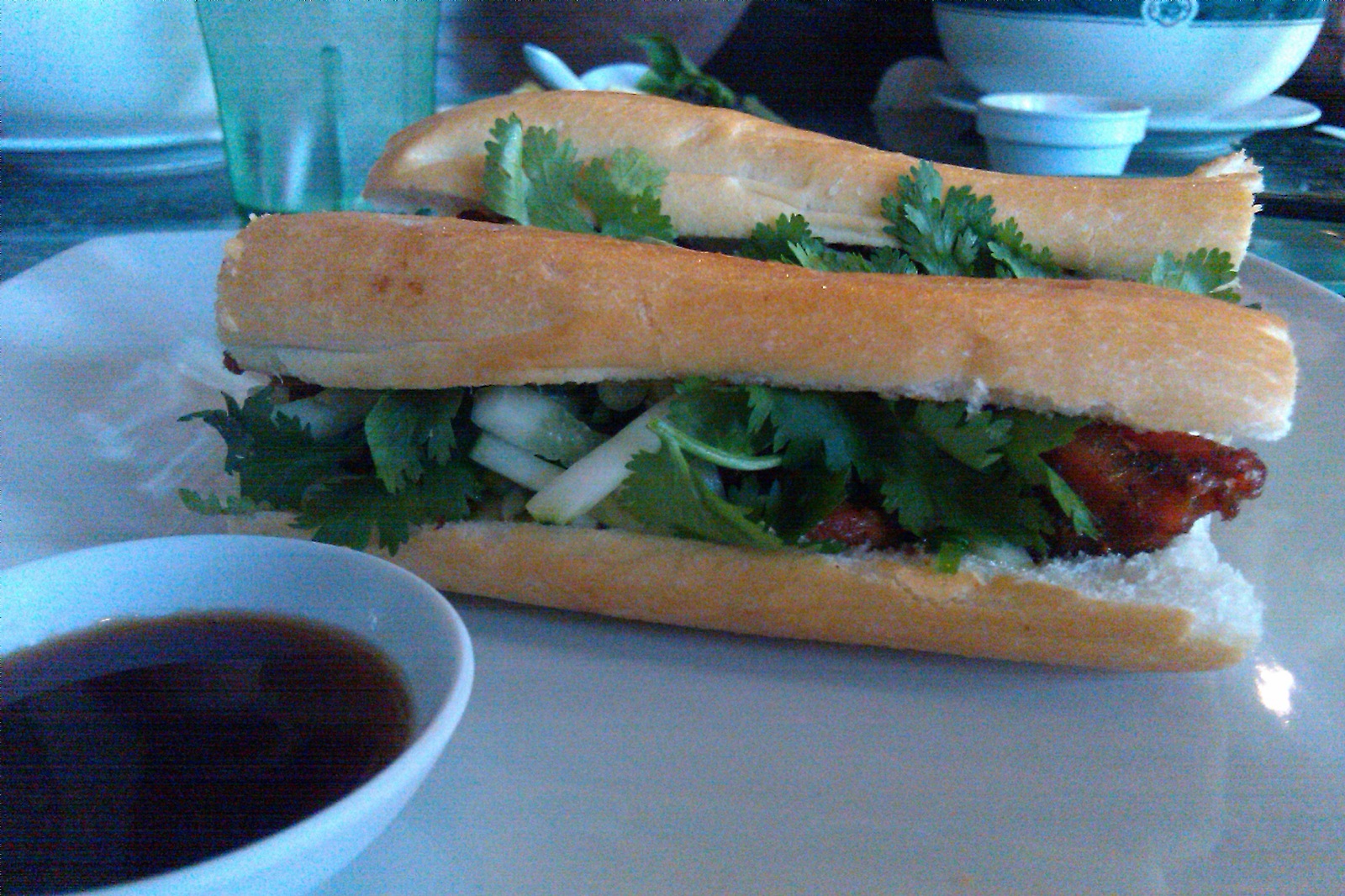 Yesterday I spoke of the bánh mì’s high-floor/high-ceiling, an idea that the average bánh mì is very good, and the best bánh mì almost incomprehensibly so. I also mentioned yesterday that bad bánh mìs, while rare, do exist. This, friends, is them. Lemongrass earns the sad distinction of being the first establishment in which I would, upon being questioned about the bánh mì, tell someone to skip it. It’s a restaurant with a full menu, and the four sandwiches on offer are but a small part of that menu. Being a sit-down establishment, the sandwich runs a bit expensive at $6. To be frank, they shouldn’t have bothered.