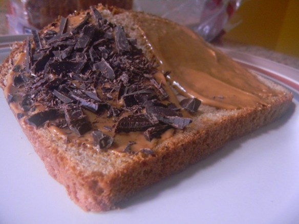 Peanut butter and Nutella is a popular combination, and with good cause. It’s delicious, but I can’t help but see it as a little bit off the mark. You’re after that peanut butter & chocolate pairing, but the first three ingredients in Nutella are palm oil, and hazelnuts. Why wade through all that? If you want chocolate, get chocolate. I say the darker the better, get something above 75% cacao and let the chocolate flavor really shine through. Peanut butter is a rich, savory flavor, and the complex flavor compounds present in cacao make a much finer pairing than straight sugar. Shaving off a larger block of chocolate is the way to go, giving you a bit of texture contrast in your sandwich. Soft bread, smooth peanut butter, and crunchy chocolate. It’s not any everyday sort of sandwich, but it’s a fine treat now and then.