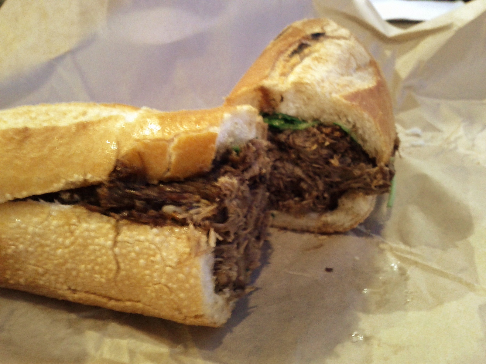 Judging by this and the short rib sandwich from Little Chef Counter, I’m inclined to say that short ribs are a severely underutilized sandwich ingredient. It’s incredibly rich, savory, and it can be an incredible background for other flavors. Serving this sandwich with about half the meat present would have set up that background and left some room for the watercress and its truffling to play through, but as it stands it was all short rib. There are far worse things for a sandwich to be, though, so consider me satisfied.