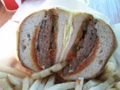 The above sandwich was their special of the moment, a pork patty grilled and put between bread with provolone, peppers and onions, and marinara. There’s not much to complain about there, the pork was moist and tasty, the flavor combination tried-and-true.