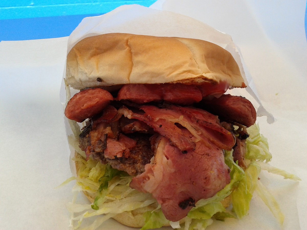 I don’t respect hamburgers. I like them, they can be tasty as all get-out. That’s almost their handicap; a decent burger is tasty enough as it is, leading far too many establishments to simply coast in with minimal effort. Those that do apply themselves frequently end up featuring something like this: