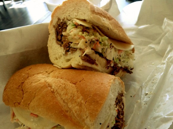 Enough about what was on the sandwich, I’d like to note what wasn’t: cheese. I’ve spoken many times about the required slice of cheese, the inveterate sense that without a piece of cheese, something isn’t a sandwich. This is hogwash, of course, but I’ve been to more places than I can count who put cheese on everything in sight, practically throwing a slice at you as you walk in the door. Enough. Clementine is smart enough to realize that there’s enough here, that no cheese is necessary, that it would either be lost in the rest of the sandwich or simply gum up the works, and so they leave it off. That was downright decent of them, and I cannot thank them enough.