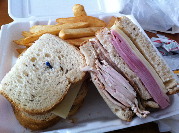 The made-to-order supermarket deli sandwich is, of course, something we have examined many times before at On Sandwiches. Today we explore another and question two things: storage and application of avocado, and abundance of the “large” sandwich.