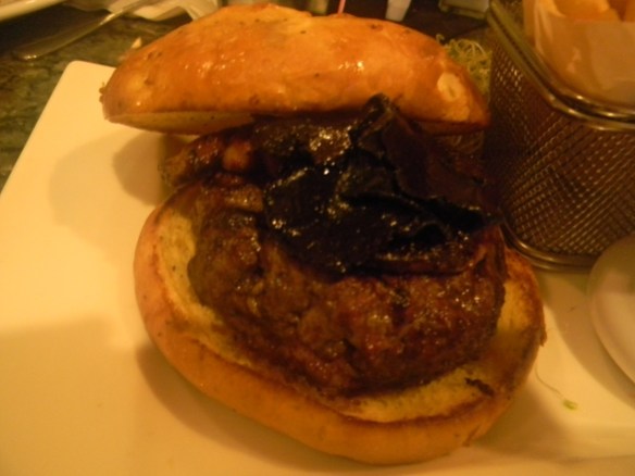 It was good. It was very, very good. It was probably the best hamburger I’ve ever had, but I don’t eat that many hamburgers so I don’t know exactly how much stock you should put into that. The beef was juicy and immensely flavorful, the foie gras rich and with a deep flavor that wasn’t afraid to play at the uglier edges of savory. The truffles were an earthy counterpart, cutting the richness of the beef and the foie gras in a way more subtle than other options, something spicy for example. The ingredients worked as I thought they might, a delicate harmony that was at its best at the very center of the burger, the meat the rarest, each bite containing the most foie gras and truffle. Whether or not it’s worth sixty dollars is something each of us would have to decide for ourselves. I’d order it again, full price, without hesitation. Whether or not it’s worthy of Rossini’s name…I might argue that nothing is, but that doesn’t mean that nothing should try. I can only say that it was a very, very good hamburger.