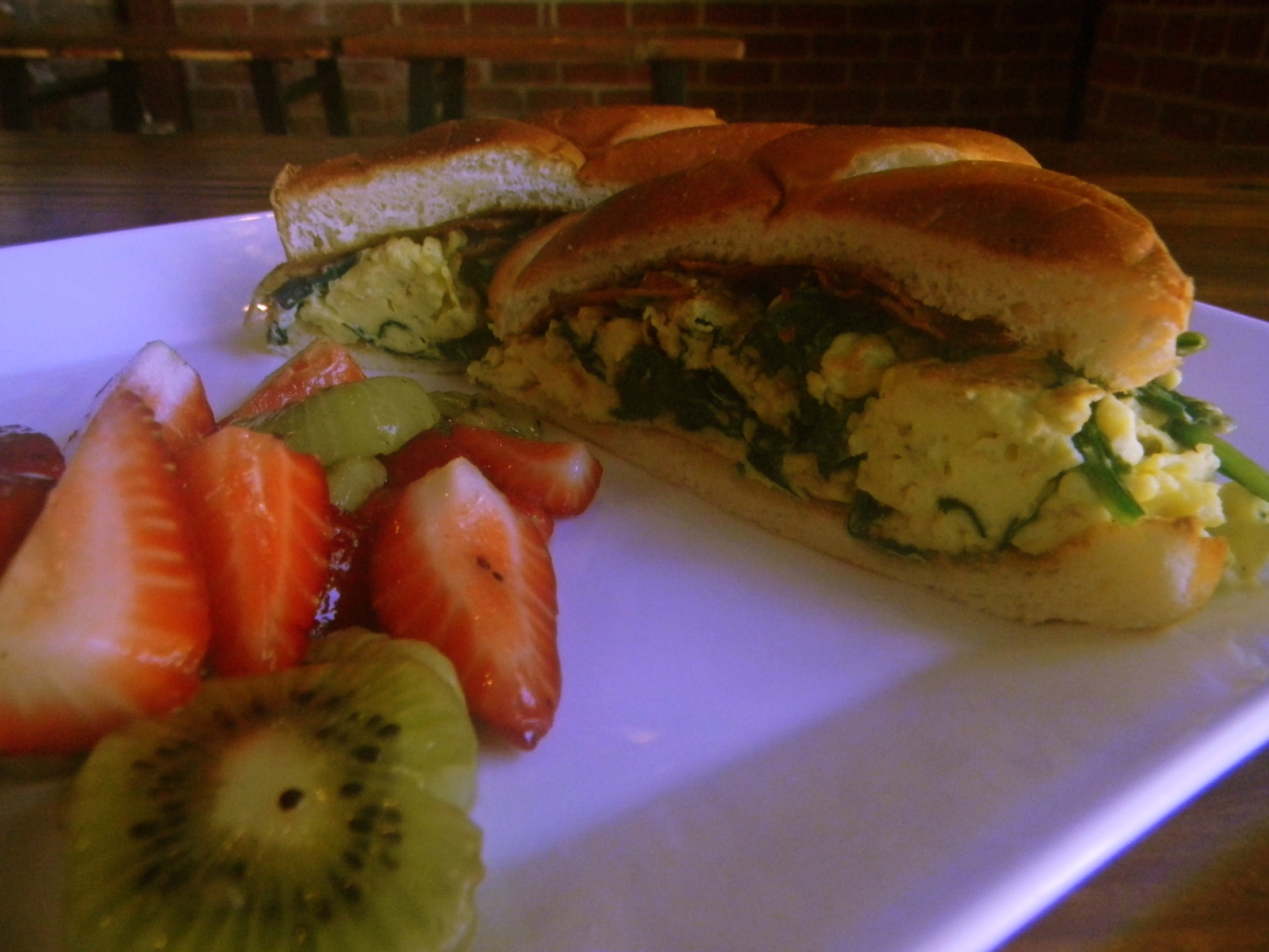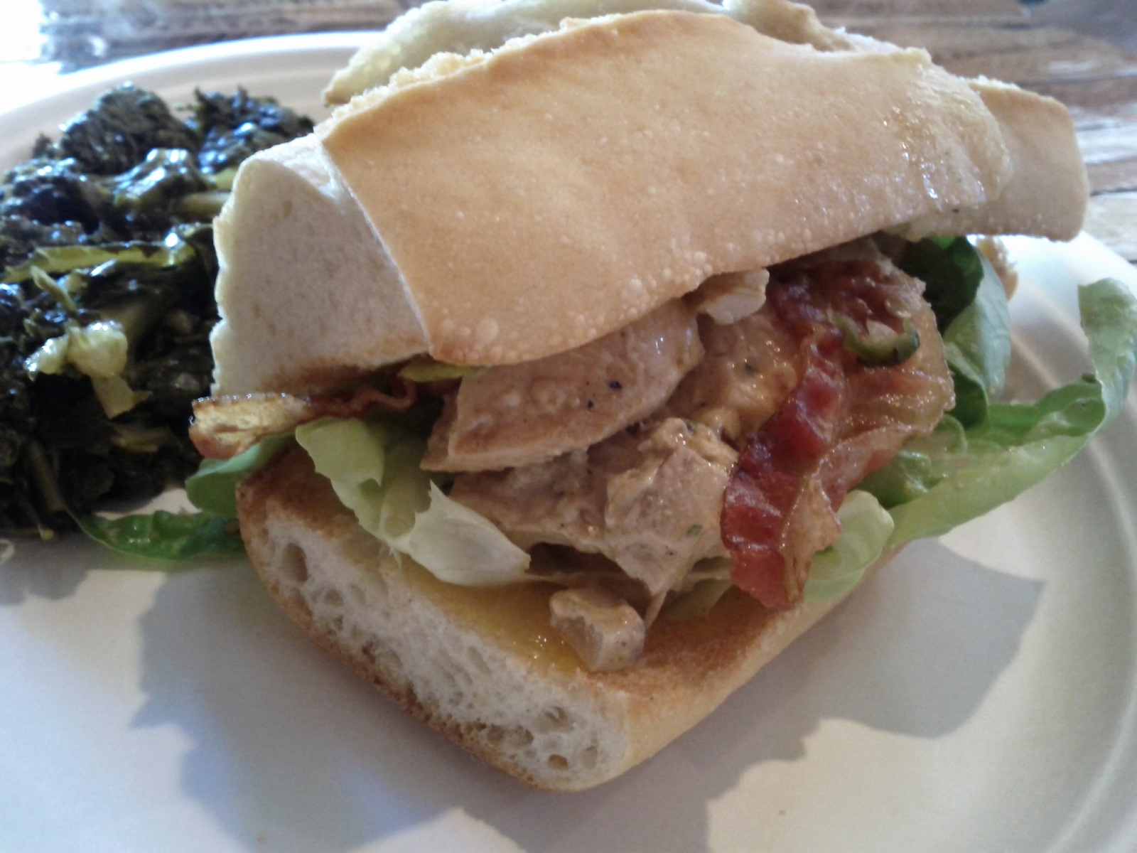 I like fat. It provides both a pleasing taste and texture, and it is a key ingredient in any number of foods that I find to be delicious. But like everything else, there’s a balance to be had, and sometimes fat just gets out of control. Pork belly…sometimes I feel like it starts out of control. There’s almost always a fair amount of gristle involved, which I suppose can’t be blamed exactly on fat, but gristle tends to come with the territory of fatty meat. It can usually be avoided, but when it comes to pork belly it seems folks either can’t or won’t. Maybe I’m looking at this from the wrong angle, and you’re ready to insist that pork belly gristle is a feature, and not a bug. I remain unsold, but that doesn’t make the sandwich above any less good. Apple and pork is a classic pairing, the celery root slaw gives an earthy base to the whole endeavor, and the citrus in the vinaigrette goes a long way in tempering the richness of the meat. It’s a great sandwich, pork belly or no.