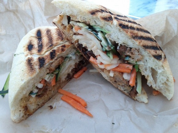 I have gone on record as saying that I’ve never had a genuinely good meatloaf sandwich, and I believe that’s because it’s a much more difficult sandwich than most people seem to think. To begin with, making a really good meatloaf isn’t easy, they’re far too often dry and bland. Beyond that the proportions in the sandwich are tough to get right, with enough meatloaf to matter you need a really fine balance of other ingredients, and it just wasn’t something I’d ever seen anyone pull off. Until, that is, I tried the meatloaf sandwich at Mendocino Farms.