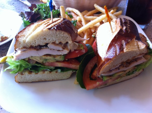 There are times when the sandwich you eat is the perfect sandwich. There are also times when the sandwich you eat is the perfect sandwich for that particular time or occasion. This offering from the La Brea Bakery was possibly both. Recently re-opened just outside of the gates of Disney’s California Adventure, the La Brea Bakery is, naturally, known for its fresh-baked bread. When I saw that one of its items was served on a pretzel roll, I did not hesitate. My adoration for the pretzel roll is, I believe, well-documented on this site.