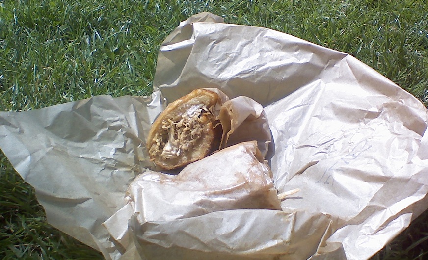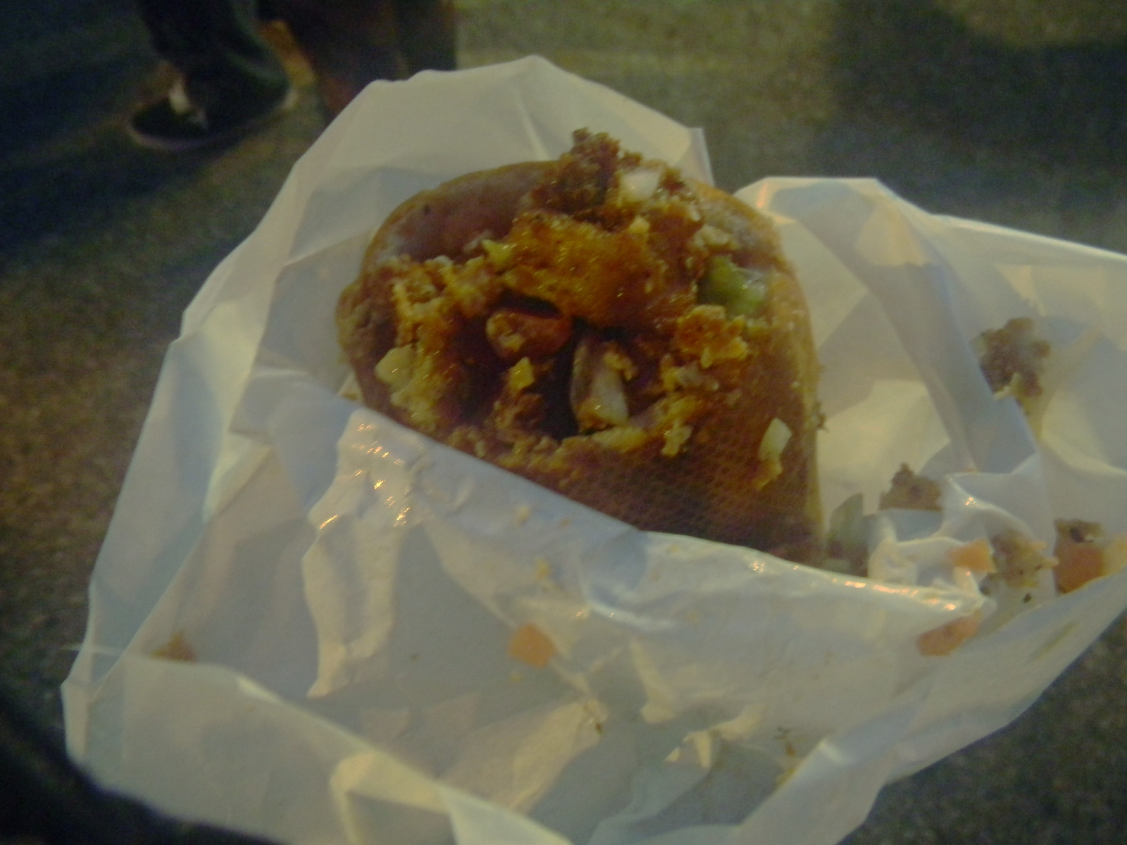 I try to take all sandwich related requests and suggestions seriously, but time and opportunity often conspire to keep an establishment on the to-visit list for quite a while. Tortas Boos Voni is one such establishment: More than a year ago, I dined on a pair of tortas milanesa and began to think that there was a really special torta out there somewhere. In the comments, regular commentor Doug recommended Tortas Boos Voni. It was only last week that I visited, but mercy do I ever wish I’d gone sooner. Simply put, this was the best torta I’ve ever had. I decided to skip the milanesa and go for the cubana, simply because it’s a higher degree of difficulty. It includes two kinds of milanesa, that of beef and of chicken, as well as ham, hot dog, and a well spiced shredded chicken thigh, all in addition to the usual tomatoes, onion, and mayo.