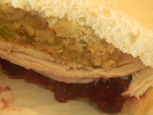 As it turns out, the Bobbie says a whole heck of a lot about Capriotti’s. Specifically it says that they either don’t know much about a good sandwich, or they don’t care to make the effort. Two things really took this sandwich off the rails, one of which was expected and one of which was a surprise. To start with, apparently mayonnaise is an acceptable substitute for gravy, or at least the folks at Capriotti’s see it that way. I mentioned mayo in my guide to the thanksgiving sandwich, but any application has to be minimal. There’s no need to get to the level of slathering, and heaven help you should the mayonnaise announce itself. The Nobadeer at Jettie’s uses mayo, but it’s minimal and restrained. If you feel your sandwich is lacking moisture, well, that’s what gravy is for. If you aren’t willing to keep some gravy warm for the purposes of a thanksgiving sandwich, perhaps you should do some thinking on why you’ve placed it at the top of your menu.