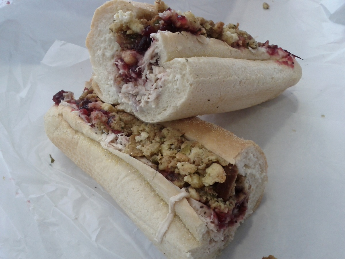 I’ve covered Capriotti’s before, and was not tremendously pleased with what they had to offer. The Bobbie is listed first and foremost on Capriotti’s menu, and as I’ve discussed previously, that’s a big signal. I had cause to return to Capriotti’s, so I figured it was only fair to take their best effort and give it a try. I intentionally avoided the Bobbie when I went previously, thinking that it wasn’t the right sandwich with which to judge the franchise. As a thanksgiving sandwich, it doesn’t have the highest degree of difficulty, and I thought it wouldn’t tell me much about Capriotti’s. Sweet mercy, was I wrong about that.