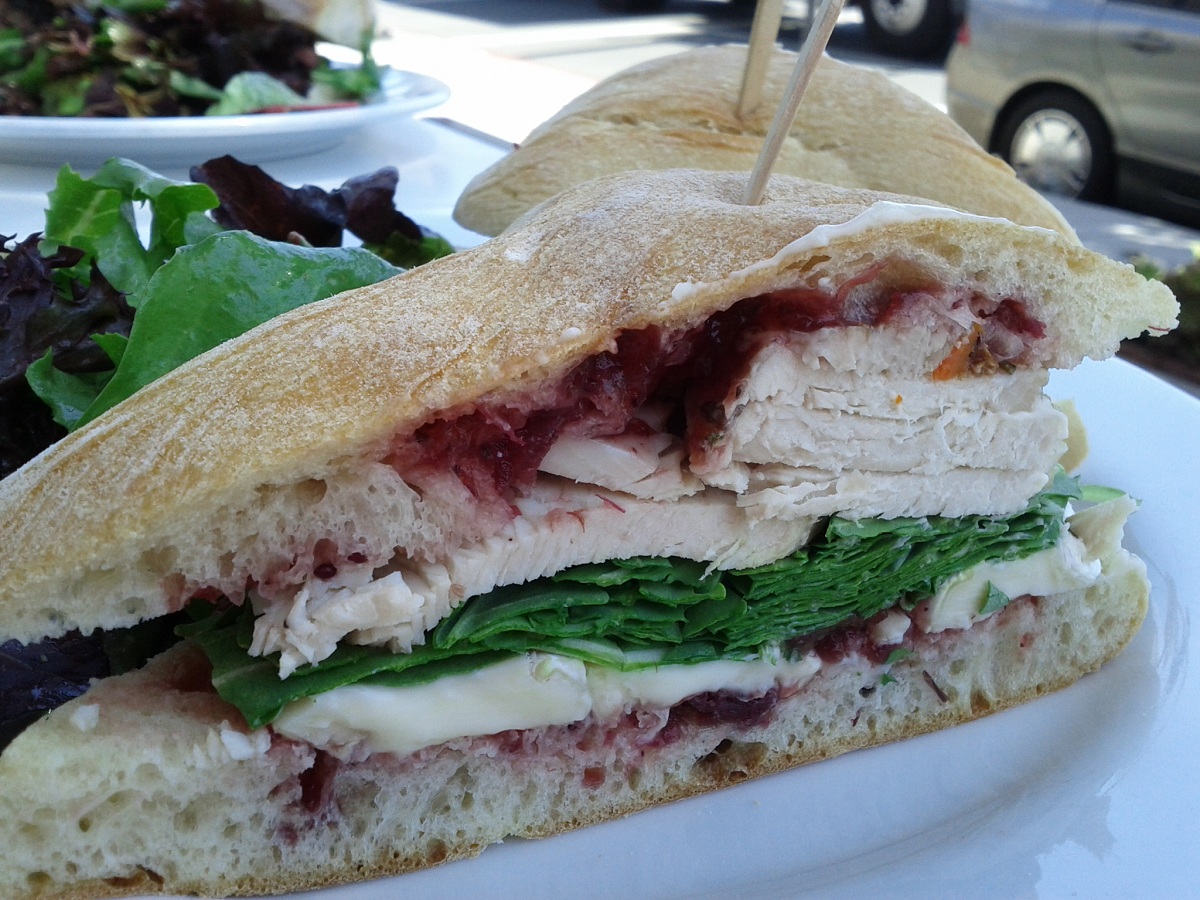 Personally, I like sliced bread, as seen in the Nobadeer from Jetties, pictured above. Avoid rolls like the one seen in the Thanksgiving on a Bun from The Village Bakery.