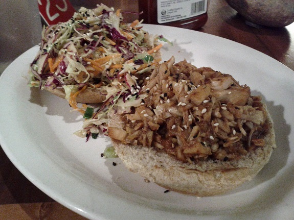 Ultimately, these weren’t spectacular. They were good, but some of the sandwiches I’ve made have really knocked me over, so it’s hard not to be a tad disappointed when something doesn’t gel completely. Maybe a different bread might have helped, the whole wheat kaiser rolls I had on hand were a bit dry and not so flavorful. Some sandwiches are a bit tricky to figure out, but luckily doing so is plenty rewarding.