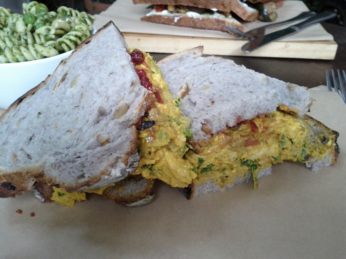 I have discussed Food Lab before, and my experience there left plenty of motivation for a return visit. The menu contains a number of sandwiches that sound delicious, and on this day I elected for the curried chicken sandwich, with lingonberry chutney on raisin walnut bread. It comes as described, with a towering pile of what is effectively curried chicken salad. I’m not at all opposed to sandwiches that are mostly a big pile of one ingredient, but this particular sandwich functions less as a delight and more as an exhibit of the need for balance. The chutney was a sweet counterpart to the chicken where it was present, but with that much chicken there just wasn’t enough of it. Spreading it on the top and bottom would have been a good start. Needless to say, the lower notes of the bread are similarly lost to the chicken, which is too bad. Curried chicken, lingonberry chutney and raisin walnut bread is a fine lineup, but it makes a poor show when the chicken reads the lines for all three.
